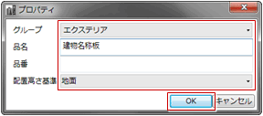 「プロパティ」をクリックして、登録するグループ名と品名、配置高さ基準を設定します。
