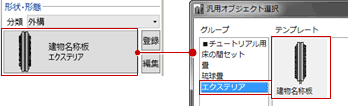 - 登録したテンプレートを使って配置するときは、「汎用3D」メニューから