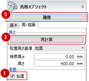 (詳しくは、「汎用オブジェクトの配置高について」を参照)