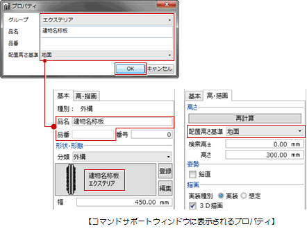 汎用オブジェクトの品名、配置高さ基準などの属性を設定します。