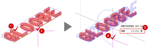 - 建物や看板に配置した立体文字の平面表現を作図したい場合は、