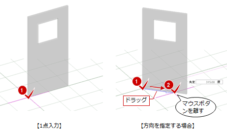 方向を指定する場合は、配置位置でマウスをドラッグしながら方向を決めます。