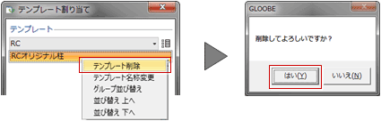 - テンプレートの削除や名称変更を行う場合は、テンプレートで右クリックして表示されるポップアップメニューのコマンドを使用します。