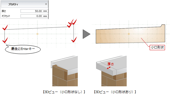 - 反対側の小口形状も必要な場合は、モードを変更して同様に入力します。
