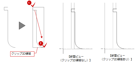 巾木、縁石などの断面系部材の場合は、躯体・仕上線をクリップする領域を入力できます。