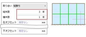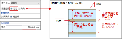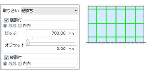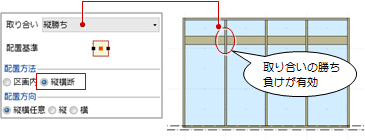 「縦横配置」に変更します。 - 方立の取り合い、配置基準などを設定します。