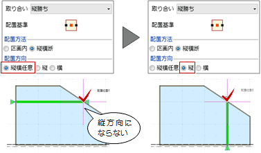 ただし、辺の角度によっては、次図のように意図した方向にならないときがあります。このようなときは、「縦」「横」を切り替えてください。