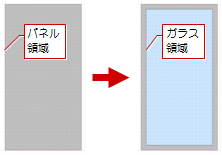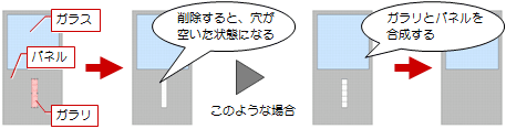 次図のようにガラス、パネルなどの建具領域を取りなおしたいときに使用します。
