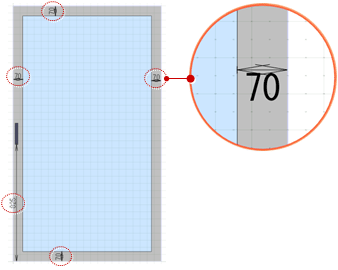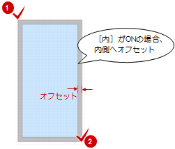 の操作については、「入力モード」を参照) - ここでは「辺オフセット」に「70」と入力して、「内」がONになっていることを確認します。