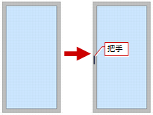- オブジェクトの把手は、建具の内側、外側同時には配置されません。「内面」と「外面」を切り替えてそれぞれ配置します。