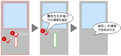 「建具領域合成」をクリックします。- 合成する隣り合う2つの建具領域を順にクリックします。
