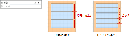 の操作については、「入力モード」を参照) - ここでは、「本数」がONであることを確認して、本数を「2」にします。