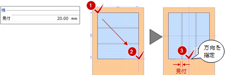 「既存建具領域(ガラス・パネル)参照」を使用すると、ガラスやパネルなどの建具領域を参照して桟を配置できます。