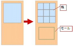 - 桟を付ける領域を指定して、桟の方向をクリックします。