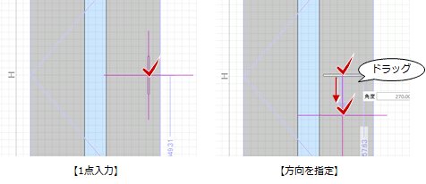 把手の方向を指定するときは、配置位置でマウスをドラッグしながら方向を決めます。