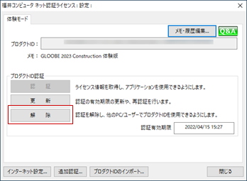 GLOOBE 2024 Construction 製品版をインストールしているコンピュータにGLOOBE 2024 Construction 体験版をインストールした場合は、インストール終了後「ネット認証ライセンスセンター」を開き、GLOOBE