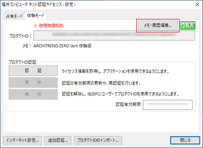 体験版の試用期限が切れたら、ネット認証ライセンスセンターの履歴から体験版のプロダクトIDを削除しておきます。