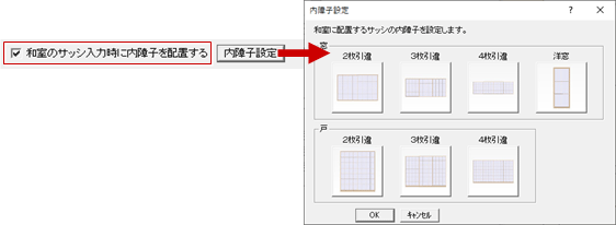取り付ける内障子は、「内障子設定」をクリックして開くダイアログで設定します。