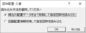 入力されているすべてのデータを削除して、図枠を入れ替える場合は「現在の配置データを全て削除して指定図枠を読み込む」を選択して、「OK」をクリックします。入れ替えを中止する場合は「キャンセル」をクリックします。