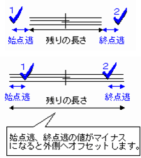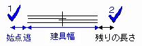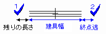 1<---・2 「建具幅」と「終点逃げ」を設定して入力する場合に使用します。