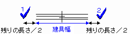1<-・->2 「建具幅」を設定して、2点間の中央に入力する場合に使用します。