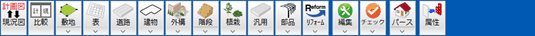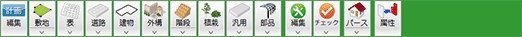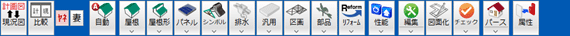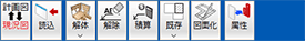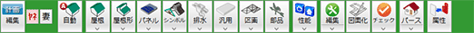 計画図物件データを開くと、各プログラムの専用ツールバーの背景が青色で表示されます。
