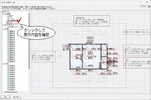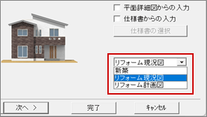 ここでは、現況図、計画図に対して平面図等に付加されるリフォーム専用機能について解説します。