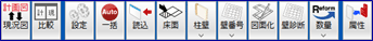 | 【参照現況図】 | 専用ツールバー(解体・撤去関連/ハッチング/積算パーツ等) | |||
