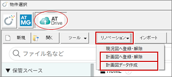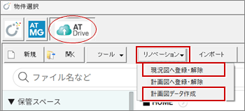 特に、現況物件のアップロード・ダウンロード等において、現況属性が被った場合、新規物件または処理中止となります。 - ARCHITREND Managerでも、現況図物件データの指定、計画図物件データの指定、作成ができます。