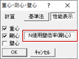 - 「専用初期設定:配置診断」の「剛心・偏心率・壁釣り合い判定にN値用壁倍率で計算する機能を追加」がONのとき、ダイアログに「N値用壁倍率(剛心)」が表示されます。この項目をONにすると、N値用壁倍率を使用して剛心を算出します。