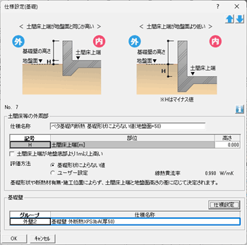 「仕様設定(基礎)」ダイアログの機能(土間床等外周部と基礎壁を別々の場合)A560130_ssk_sec04