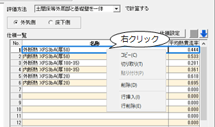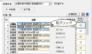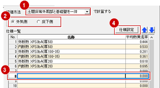 - 断熱の仕様を登録するグループ「外気側/床下側」を選択します。