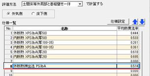 - 仕様一覧に、名称と熱貫流率が登録されます。