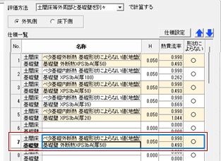 ※ 評価方法は「専用初期設定:床・基礎」の「評価方法」と連動します。