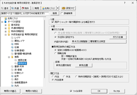 平均日射熱取得率(ηA)の計算に用いる「熱的境界(建具)」のガラス仕様の初期値を設定します。