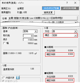 取得日射熱の補正係数の条件を変更するにはA560152_set_sec03