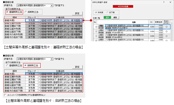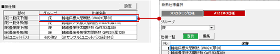 ※「断熱仕様選択」ダイアログのATZERO仕様は、「専用初期設定:仕様」で登録した断熱仕様が表示されます。