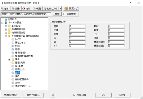 外皮平均熱貫流率や平均日射熱取得率を求める際に、熱的境界の名称に付ける接頭記号を設定します。