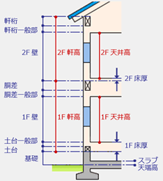 | 胴差一般部 | 1F軒高-1F床厚-1F天井高-胴差せい | |