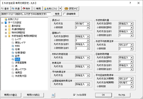 | 平均熱貫流率 | 各仕様の熱貫流率を算出するときの丸めを設定します。 Ver.6までのデータは、「切り上げ」固定です。 |