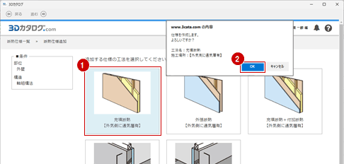 ※ 3Dカタログ断熱仕様を作成するには、インターネットに接続されている環境と3Dカタログ.comの会員登録が必要です。