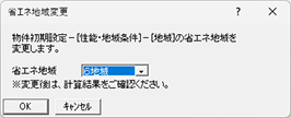 | 地域 | 「物件初期設定:性能・地域条件-地域」設定されている省エネ地域が表示されます。 省エネ地域を変更すると、「物件初期設定:性能・地域条件-地域」の省エネ地域も変更されます。 ![]() |