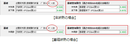 | 高さ400㎜を超える基礎のとき、「熱的境界(壁)加算分」に400㎜を超えた分の値をセット | ||||