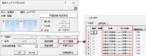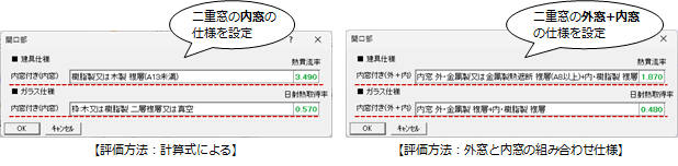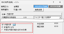 ※ 内窓の仕様は「専用初期設定:建具-建具仕様」の内窓の評価方法によって設定する内容が変わります。