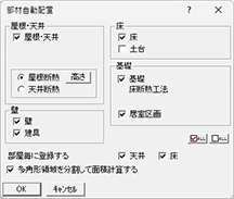 - 「部材自動配置」ダイアログの設定は「専用初期設定:自動配置条件」から連動します。