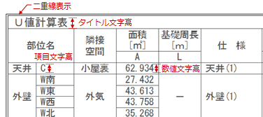 外皮性能図で作成する表の文字の高さや表示については、「共通」タブで設定します。