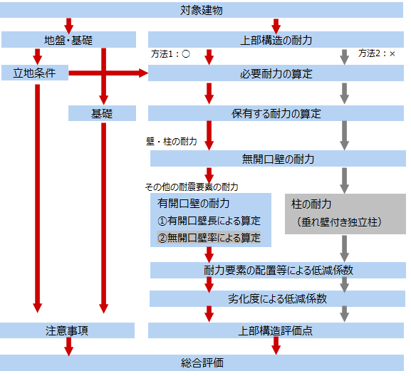 ZERO耐震診断では、以下の流れで「方法1」の一般診断を行います。