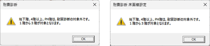 地下階あり、または4階階以上、またはPH階ありで、耐震診断の図面を開いた場合は以下のような確認画面が表示されます。