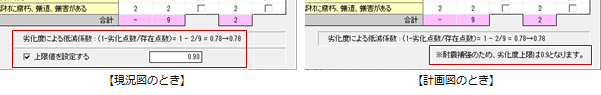 計画図のときは、上限値は0.90になります。ただし、現況図で低減係数が0.90を超えている場合は、その値が上限値となります。