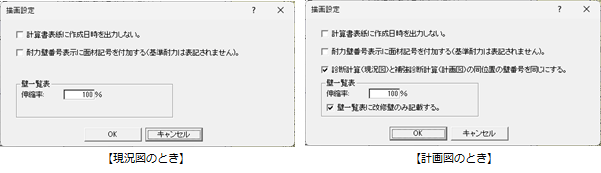 図面や診断書の表記を変えたい場合、「描画設定」で該当する条件をONにします。